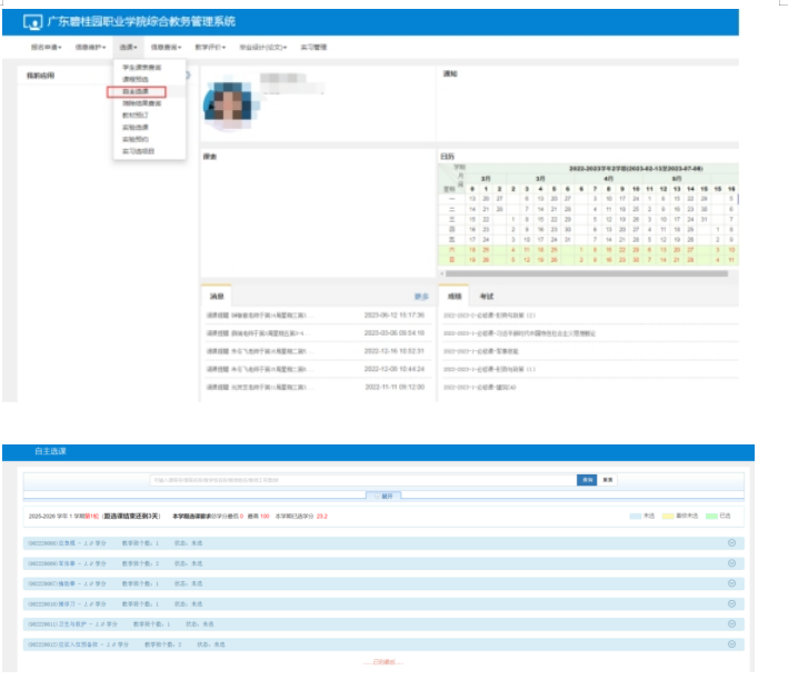电脑端:操作流程:登录教务系统→选课→自主选课